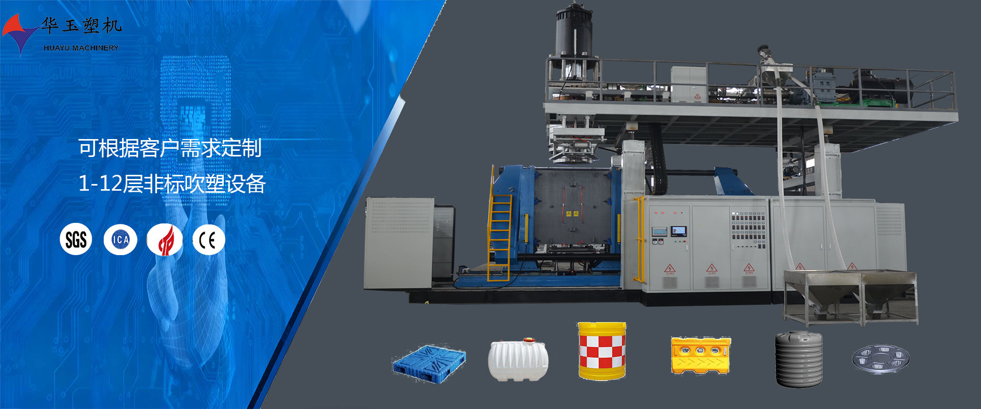 濰坊市華玉塑料機(jī)械有限公司創(chuàng)辦于貳零零貳年,是超大型全自動(dòng)中空吹塑設(shè)備專業(yè)生產(chǎn)廠家。公司融合國(guó)內(nèi)外先進(jìn)技術(shù)和理念,專業(yè)設(shè)計(jì)、生產(chǎn)、銷售一層到十層的大型全自動(dòng)中空成型機(jī)組。我公司生產(chǎn)的各型號(hào)吹塑機(jī)可生產(chǎn)50升到30,000升的各類塑料水桶,噸桶、雙環(huán)桶、水馬、路錐、隔離墻托盤(pán)、桌板、浮筒、皮劃艇、工具箱包等中空制品。優(yōu)良的品質(zhì)、穩(wěn)定的性能、優(yōu)越的性價(jià)比使公司產(chǎn)品不僅暢銷國(guó)內(nèi)市場(chǎng),并出口到亞洲、東南亞、中東、歐洲、北美、南美、非洲等80多個(gè)國(guó)家和地區(qū),深受客戶的好評(píng)...